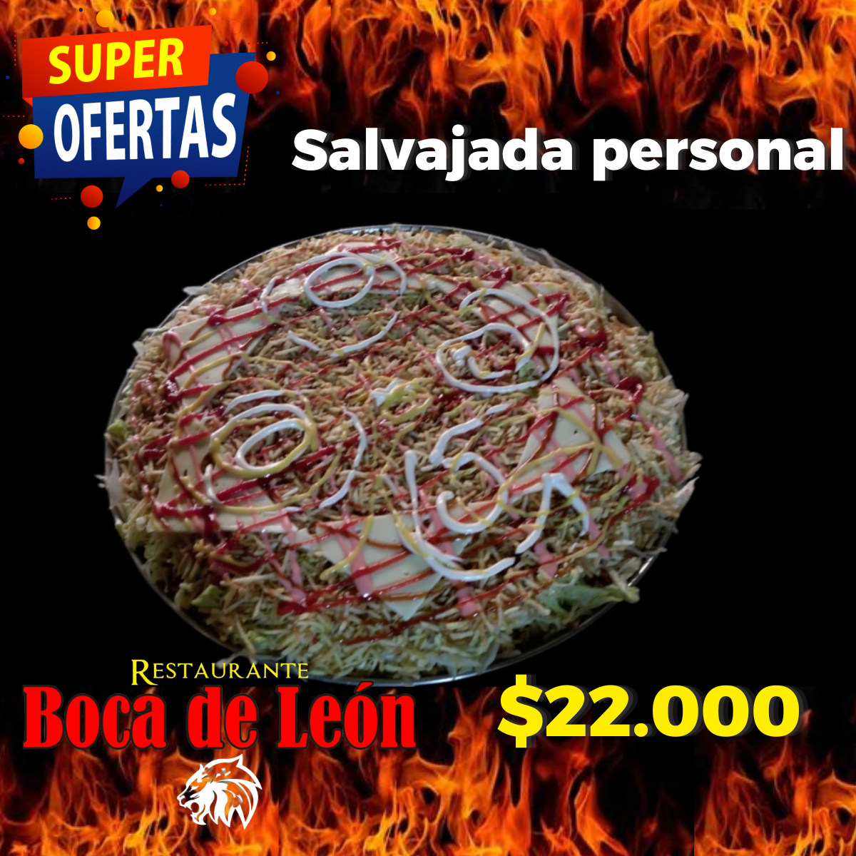 Salvajada es un plato compuesto por diversos ingredientes, entre ellos, papa fracesa, carne, pollo, maiz tierno, lechuga, cabanos, cebolla caramelizada, entre otros.
